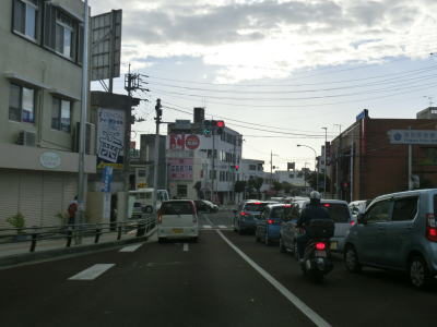 | 27.二輪・軽車両の通行帯規制はまだ続いている | 28.交通量は相変わらず多い | 29.コンビニも点在している |