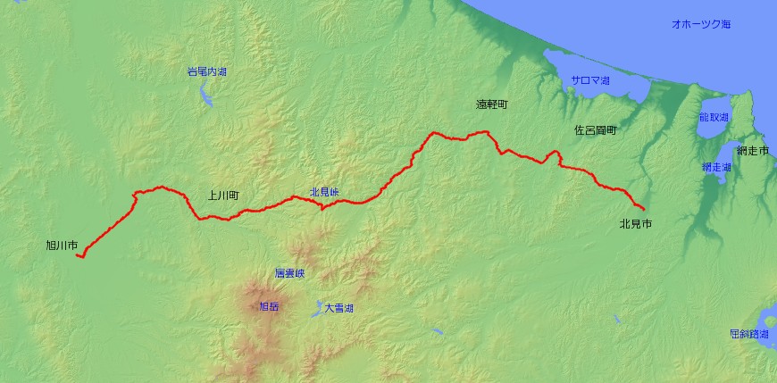 | 主な経由地 | 北海道旭川市〜愛別町〜上川町〜遠軽町〜北見市 |