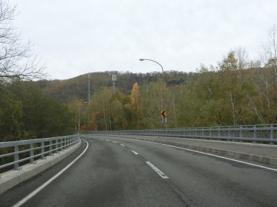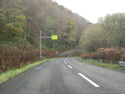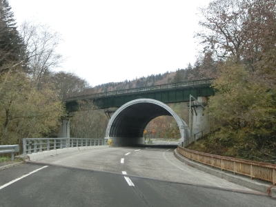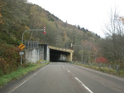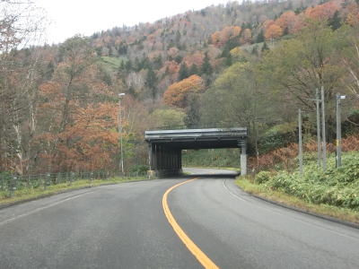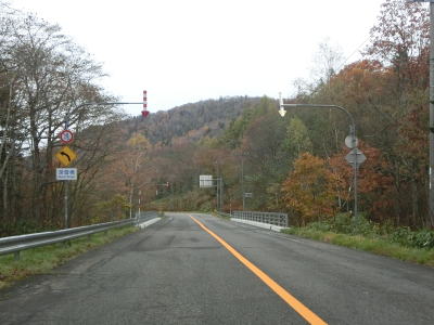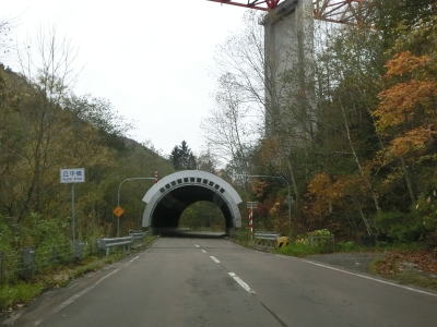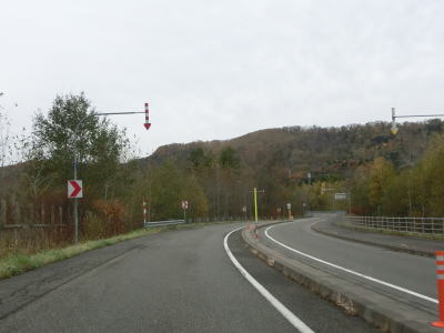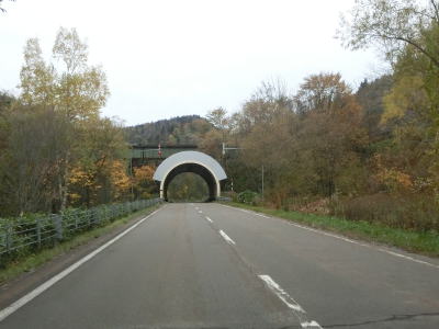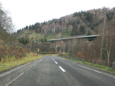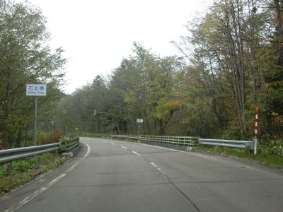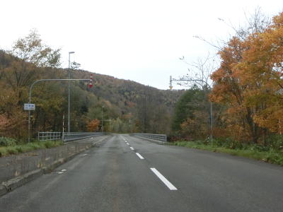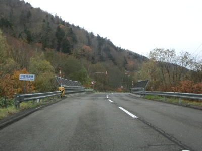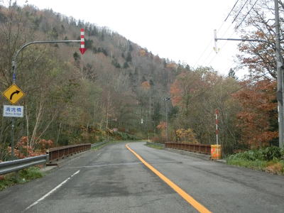 | 二股シェルターの直後に紅葉橋を渡り、大きく右にカーブして渓流橋を渡る。さらに少し走ると清流橋と深雪橋を相次いで渡る。これら4つの橋は全て留辺志部川に架けられており、短い距離で右岸と左岸を往ったり来たりする。 | ||