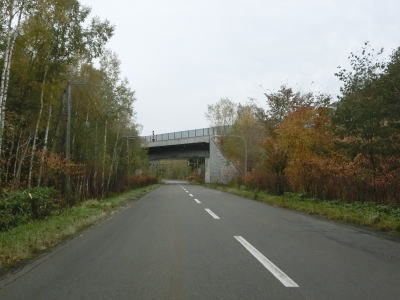 | 2車線道路を走っていると中央分離帯が現れて右カーブを曲がる。追越しを物理的に禁止するために設置された中央分離帯であろうが、カーブは比較的緩やかである。対面2車線道路に戻ってすぐに左にカーブしている天幕橋を渡り、次いで宇円内橋を渡る。その後は旭川紋別道とJR石北線に挟まれた間を走る。 | ||