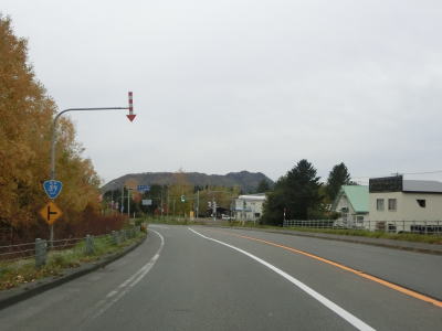 | 緩やかな勾配を上って中愛別跨線橋でJR石北本線をオーバーパスし、少し走った先で新愛橋を渡る。その後しばらくは平坦な直線道路となっており、交通量が少ない事もあって非常に走りやすい。 | ||