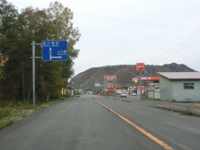 | R39・R273日東交差点からはR39との重複区間を旭川方面に向かって進む。二桁国道と重複しているが、交通量は僅かに増える程度である。留辺志部橋を渡って左カーブを曲がって少し走った所で北海道r300・r849交差点を通過する。右折してr300を北上すれば上川町の市街地に、左折してr849を南下すればE39/R450旭川紋別道の上川層雲峡ICに行く事ができる。 | ||
