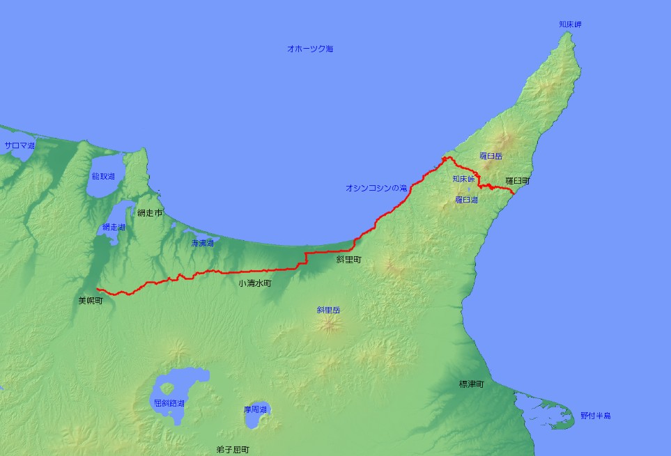 | 主な経由地 | 北海道羅臼町〜斜里町〜小清水町〜美幌町 |