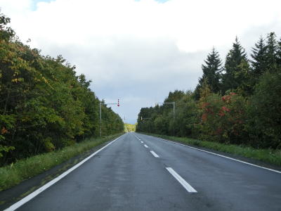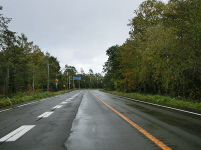 | 北海道標津町の中心部から見て北に位置するR244忠類交差点がR335の終点である。ここからオホーツク海に沿って走り、知床半島の東側の羅臼町に向かうが、延長は40km強と非常に短い。 R244を南から来るとR335へは道なりに直進する。R244根室方面とR335がメインルートであるかのような交差点形状だが、実際のメインルートはR244の両方向と思われる。オホーツク海沿いを走っており、車窓からはオホーツク海が見える。 |
