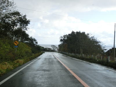 | 崎無異集落からも引き続き海沿いを走っているが、海寄りの樹木が少ない場所では海が見えるようになる。崎無異集落の北端部分を通過するが、さほど切り立った断崖を通っている訳でもないものの落石に注意を促す警戒標識が設置されている。 | ||
