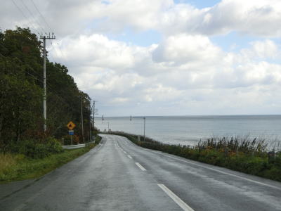 | 1.R244忠類交差点 | 2.「知床峠60km 羅臼43km」 | 3.オホーツク海沿いを走る |