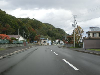 | 松法漁港を過ぎると沿線の家屋が少なくなるが、集落自体が途切れている訳ではない。第5相助橋を渡って左にカーブした先で礼文町集落に入る。羅臼町の中心部に繋がっている集落であり、家屋に交じって商業施設も建っている。 | ||
