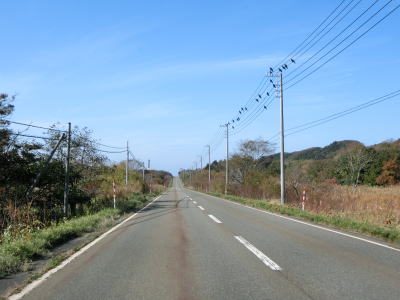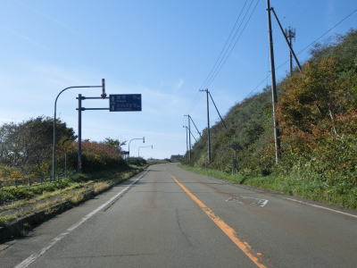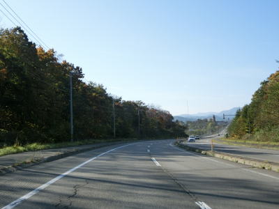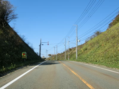 | 沿線の家屋が途切れてからはカーブが多くなるが走りにくさを感じる程度ではない。ごく緩やかなアップダウンを繰り返す2車線道路を淡々と走る。緩やかな上り勾配が続いていると追分峠を越えて下り勾配に転ずる。 | ||