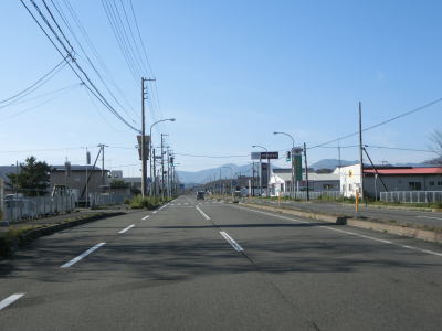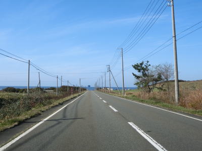 | 庶野交差点からは上り勾配となり右カーブから海岸線を離れた内陸に向かう。カーブが終わると直線道路になり勾配もほとんどなくなる。見通しが良く非常に走りやすい道路状況だが交通量は少ない。沿線に家屋が存在しない訳ではないが、耕作地の奥にあり道路の傍に建っている家屋は少ない。 | ||
