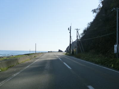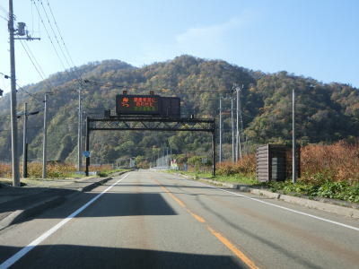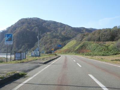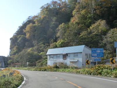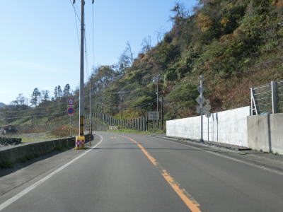 | 比較的長いオリコマナイ覆道を出た先で閉鎖用ゲートを通過して道路通行規制区間から出る。音調津橋を渡って音調津集落の海岸線寄りを走っていると早くも次の道路通行規制区間に入る。この区間の延長は11.6kmと最初のものに比べて2倍近い。北海道r1071が音調津集落に通じているため、R336が通行止になってもr1071で広尾市街方面との往来は可能であるが、これより南はR336が唯一の道路である。 | ||