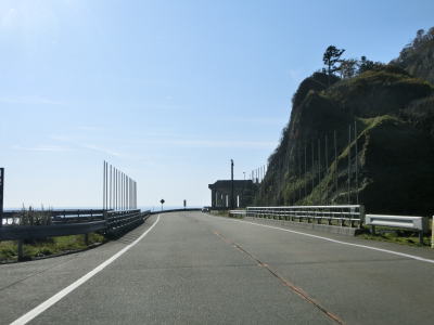 | 白浜トンネルの次はフンコツトンネルをくぐり、その南に閉鎖用のゲートが設置されている。ゲートを過ぎると緩やかな勾配を上り、右カーブ付近で望洋台と呼ばれる展望所を通過する。標高は20m程度と決して高くないが太平洋を一望できる場所である。ただし、駐車スペースのみでトイレや自販機はない。 | ||