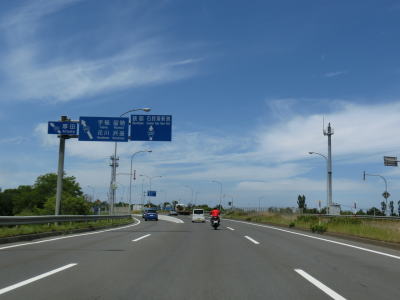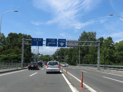| 69.花畔大橋の右側車線が工事中 | 70.R231花畔ICは直進 | |
