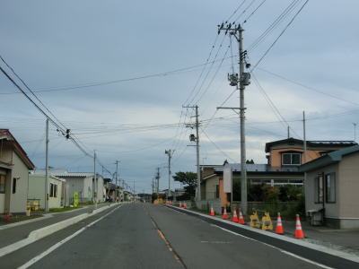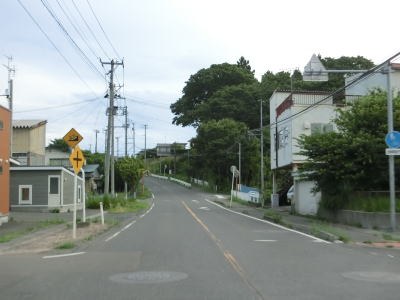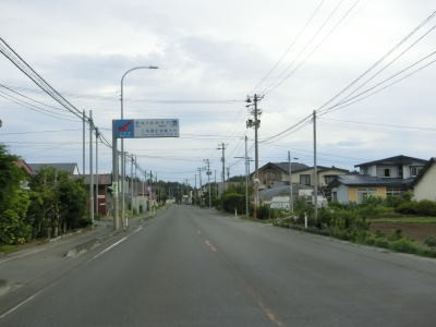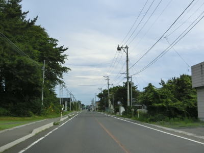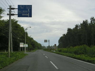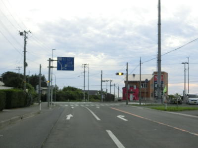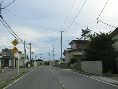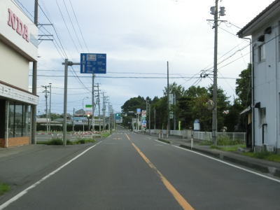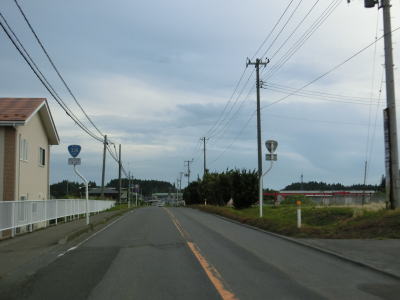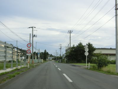 | 細谷集落の次に六川目集落を通り抜ける。〇川目集落の最北であり、一川目と二川目はおいらせ町内に、三川目〜六川目は三沢市内にある。断続的に続く集落を通っていると道の駅「みさわ」に至る市道との交差点を通過する。 | ||