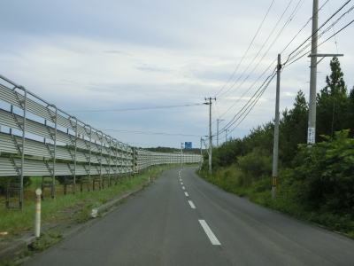 | 集落があってもなくてもほぼ平坦で直線的な2車線道路が続く。淋代を通り過ぎた後にゆとりの駐車帯の前を通る。ゆとりの駐車帯とは青森県によく見られる簡易パーキングで、中には公衆トイレが設置されているものもある。 | ||