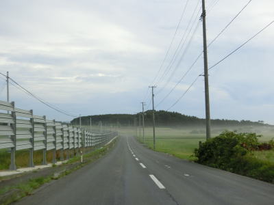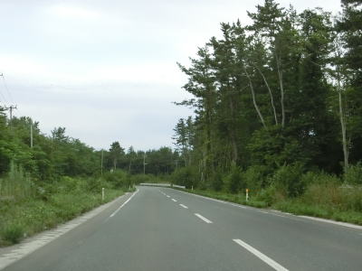 | 塩釜集落を通り過ぎると集落が途切れて樹木が生い茂っている間を走る。仏沼というラムサール条約に登録されている湿地帯が西にあるが、樹木や防雪柵に視界を遮れているため殆ど見えない。 | ||