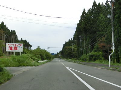 | 東通原子力発電所の敷地に沿っている状態が終わると小田野沢集落に至る村道との交差点を通過する。小田野沢集落とは距離が離れており沿線に家屋はなく見通しの良い快走路を走る。速度が出やすい道路状況のためスピードの出しすぎに注意を促す看板が設置されている。 | ||