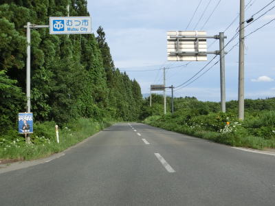 | 太田橋を渡ってからはセンターラインのない2.0車線幅道路とやや狭くなるが、平坦な直線道路で見通しが良いため走りにくさはさほど感じない。むつ市の市街地の西部でR279・R394横迎町交差点を通過する。R394はこの交差点が起点のため、六ヶ所村の平沼交差点から始まった重複区間が終わる。その距離は約64kmとかなりの長さである。 | ||