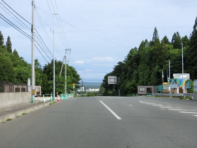 | 青森r7交差点の直後に案内標識に大間町までの距離が75kmと表記されているが、これはむつ市〜大間町間はR279を経由するルートでの距離であり、陸奥湾沿いのR338であれば約2倍の140kmと大きく異なる。 緩やかな上り勾配の2車線道路を走っていると東通原子力発電所PR館トントゥビレッジの前を通る。六ヶ所村の日本原燃の発電所にも同様にPR館があるが、原子力発電所の敷地とは少し離れている。PR館を過ぎてからも東通原子力発電所の西側を通っているが、生い茂った樹木のため建物は一切見えない。 |