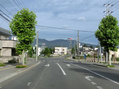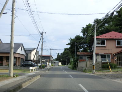 | 横迎町交差点を過ぎて200m強はセンターラインのない1.8車線幅道路が続く。センターライン付きの2車線道路になった後に青森r6交差点を通過する。その直後に下北交通の線路跡を通過するが、廃止されたのが20年以上前の2001年とあって踏切部分は完全に撤去されている。 | ||