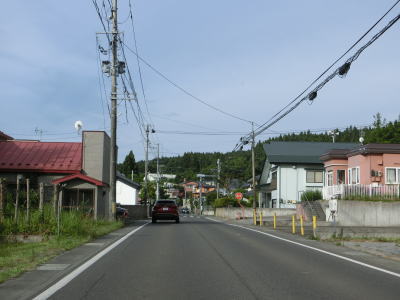 | JR大湊線の終着駅の大湊駅の駅前ロータリーを通過するが、案内標識が設置されておらず駅前を通った印象は薄い。歩道のない2車線道路を走っているとセンターラインがなくなるが、これは経年劣化で消えただけのようである。 横迎町交差点から約5.8kmでR338大湊バイパスとの交差点を通過するが、この道路自体はバイパスではなく部分開通したバイパスと現道を繋ぐ連絡道路である。開通しているのが東方向であるためか、案内標識は設置されていない。 |