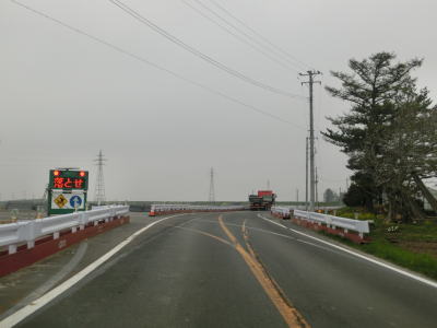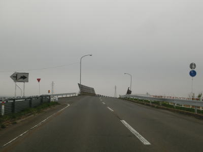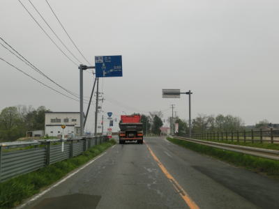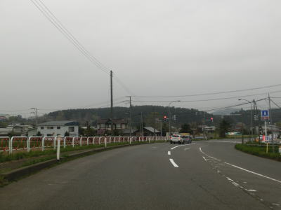 | 直線的な2車線道路を走っていると宮野沢川を中泊町役場の西を通過する。緩やかに右カーブを描く勾配を上っていると新中里橋を渡るが、その手前で交差している町道は旧道と思われる。そのせいか、交差点を過ぎると若干狭い区間が存在している。 | ||