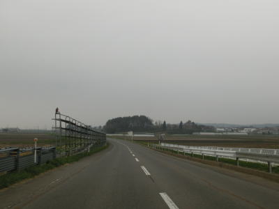 | 牧野を走っていると道の駅「十三湖高原」の前を通過する。十三湖を見下ろす展望台の他に全長136mのローラー式滑り台が設置されている。道の駅からは樹木に囲まれた場所を走る。福島城の外堀跡や福島城跡の近くを通過しながら2車線道路を走る。 | ||