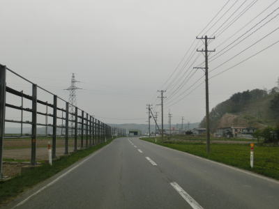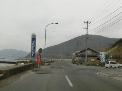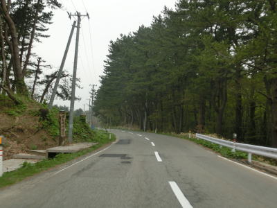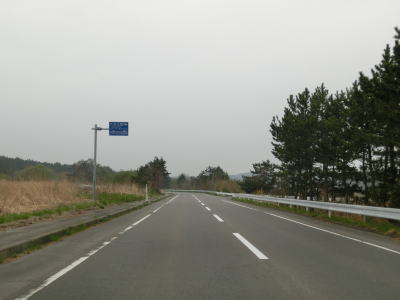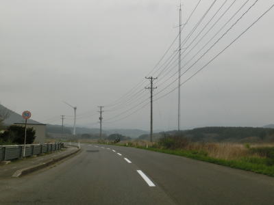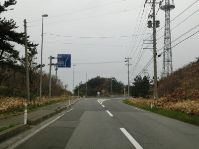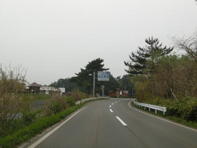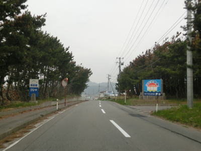 | 青森r12交差点からは比較的海の近くを走っているが、地形と樹木の関係で海は見えない。風力発電用の風車がいくつか建っているのを見ながら2車線道路を走る。雪国とあって路面の補修痕が目立つ場所もある。脇元牧場の一部(?)であるし〜うらんどという海水を利用した施設は海遊館とも呼ばれているようで、入口にはそちらの方が目立つ看板がある。 | ||