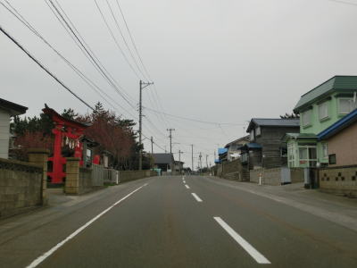 | 102.海岸線沿いを走る | 103.赤川集落内に1.8車線幅区間あり | 104.洗磯崎神社の前を通過 |