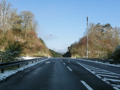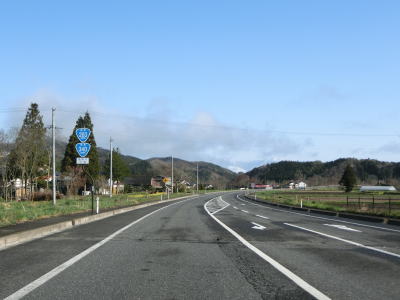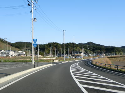 | 廻館交差点以降も勾配、カーブともに緩やかな2車線快走路が続いている。下壺集落では家屋が建ち並んでおり路側帯が狭くなるが、乗用車で通る分にはほとんど影響ない程度である。気仙川の左岸の集落を繋ぎながら淡々と快走路を走る。 | ||