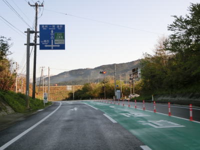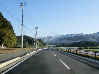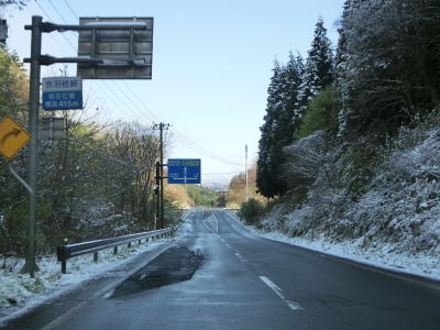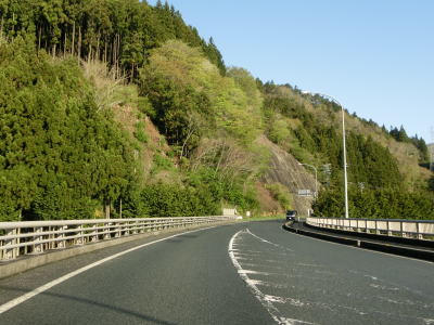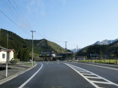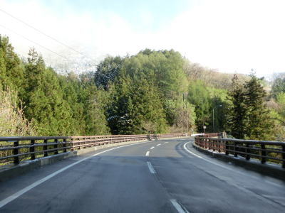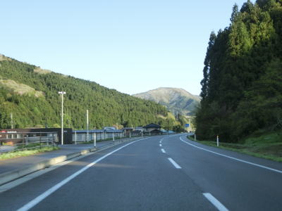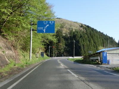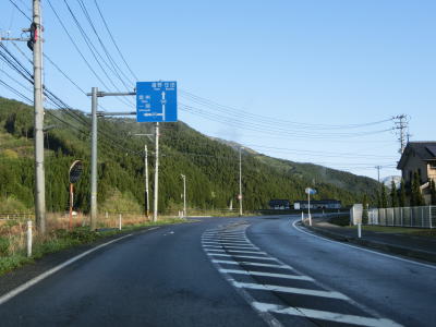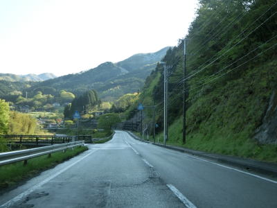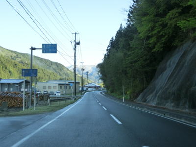 | 川口交差点の直後の向川口集落は沿線に家屋が建ち並んでおり若干の狭苦しさを感じるが、集落を過ぎれば2車線快走路を走る事ができる。山間部の300番台国道という条件にしては良く整備されている。 | ||