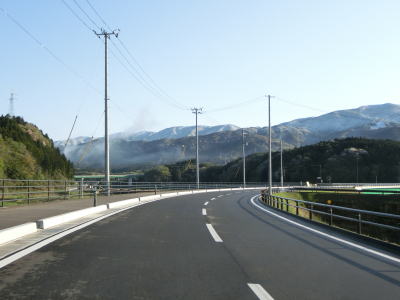 | 岩手r38交差点を過ぎて少し走ると上り勾配となり、市道の氷室橋をくぐった先でR45/E45三陸道の陸前高田ICを通過してから本線の下をくぐる。R45/E45三陸道は前述の東日本大震災以降に整備された区間が多く、鳴瀬奥松島IC〜八戸是川IC間は無料で通行する事ができる。 | ||