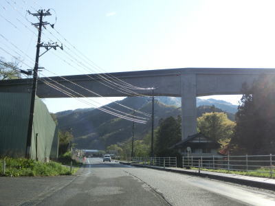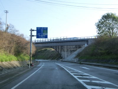 | 岩手r239交差点を通過するが、r239も遠野市の市街地までを繋ぐ県道だが、市町境の蕨峠が冬季閉鎖区間である。2022年は4月27日12時を以て解除されている。気仙川の右岸の平地を走っていると空中を横切る高架橋をくぐるが、山の間に架けられたこの高架橋はどこにも繋がっていない。廃線になった鉄道橋にしては新しいので建設中もしくは計画が中止になった道路かもしれない。 高架橋をくぐった先で現道との交差点を通過して蔵王洞橋を渡り、有住中学校の北を通って新曽古内橋を渡った先で現道と合流する。開通したのは2022年3月25日と1ヶ月も経過していないせいか、ウオッちずでは元の道路を国道扱いしていた。 |