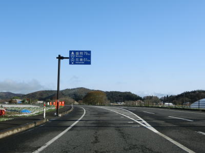 | 遠野住田ICからは勾配はほとんどなくなるうえに路側帯が広く取られているためさらに走りやすくなる。R283とR343の串刺しおにぎりが立っているが、これは釜石道がR283に指定されている証左であろう。遠野市の中心部とインターチェンジを繋ぐルートだけあってよく整備されている。 | ||