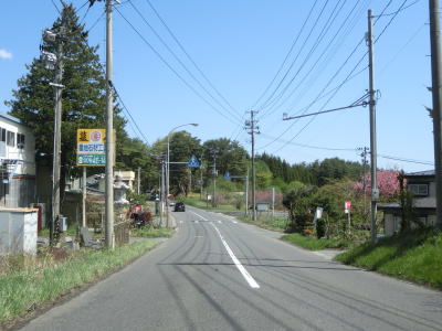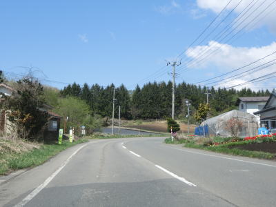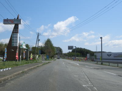 | 旧南郷村の中心部に差し掛かると建物が密集した間を通るが、狭くて片側だけではあるが歩道の設置された2車線道路のため、走りにくさはあまり感じない。旧南郷村役場の南西で青森r42交差点を通過する。左折して南部方面に500m走ると道の駅「なんごう」がある。r42交差点からは下り勾配となり、その後上っていると一里塚の傍を通る。 | ||