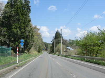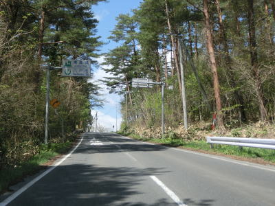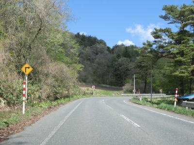 | 番屋集落を過ぎると6%と十文字集落の北に比べると緩やかな勾配を下る。最も急勾配の箇所の警戒標識では8%となっていたが、そこまで急な勾配には思えなかった。アップダウンとカーブを繰り返す2車線道路を走り、R45/E45三陸道の是川トンネルの上を通った後に名川八戸林道との交差点を通過する。この辺りから交通量が増えてくる。 | ||