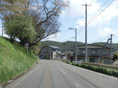 | 十文字集落を通り抜けて勾配を上っていると下りに転じ8%の急勾配を下る。その後上り勾配なるが、番屋小学校跡から再び下り勾配となる。アップダウンを繰り返す状態だが、信号機付きの交差点はほとんどなく早いペースで流れている。 | ||