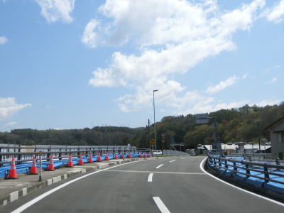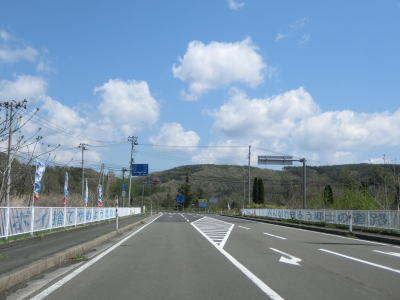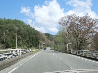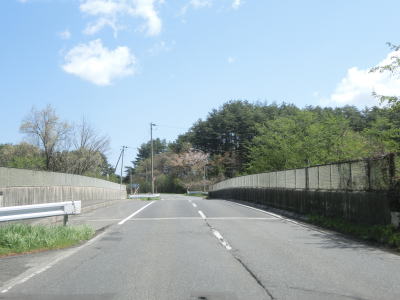 | 泥障作大橋を渡り終えると橋の下をくぐるが、航空写真で見る限り橋の両端どちらにも道路が繋がっておらず橋上の全てが緑で覆われているため利用されていない橋と思われる。南部・泥障作方面の広域農道(?)の連絡道路との交差点の直後に広域農道の本線の下を通る。その後は緩やかな上り勾配の2車線道路を走る。 | ||