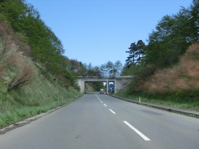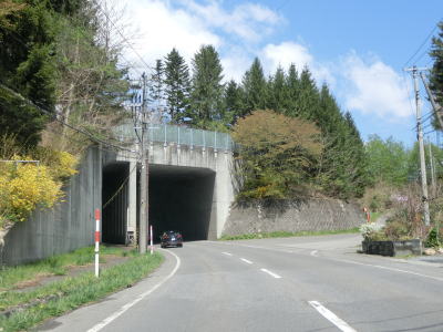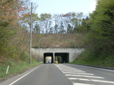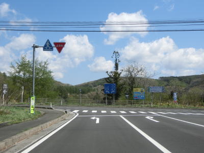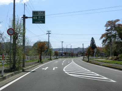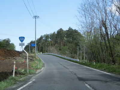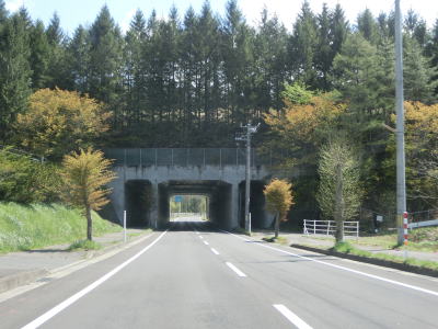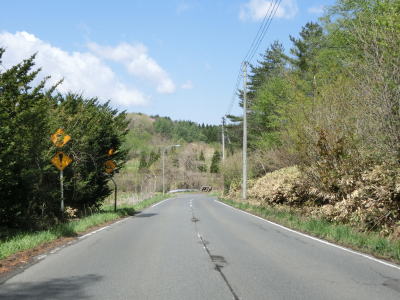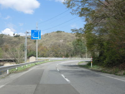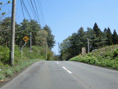 | 軽米交差点からは緩やかな勾配を上り、下りになった後にE4A八戸道のカルバートをくぐる。その後も下り勾配が続き、7%の下り勾配を示す警戒標識も立っているが、道路状況が良いせいかそれほどの急勾配とは思えなかった。 | ||