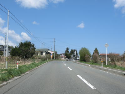 | 観音林交差点からはR395が重複した状態となるが、道路状況としては見通しの良い快走路が続く。アップダウンしている2車線道路を走っていると左に大きくカーブする。沿線に家屋は少なく田畑が多い。 | ||