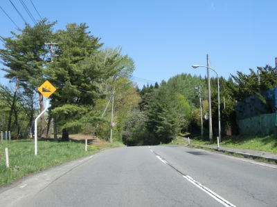 | 最後の左の急カーブを曲がるとカーブ区間を抜けて勾配も下りになる。フォリストパークに至る町道との交差点を通過してE4A八戸道のカルバートをくぐって緩やかな右カーブを曲がる。 | ||