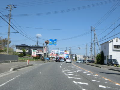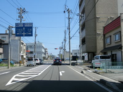 | 八戸市の市街地で青森r251新荒町との交差点を右折して八戸支庁方面に進む。r251の行き先にR104のおにぎりしか表記されていないが、その標識通りR104に至る。ただし、距離は1kmもなく400m弱である。 新荒町交差点からも2車線道路だが、どちらの車線も東向きしか進む事ができない一方通行道路である。この区間に対応する西向き一方通行区間はひとつ南の道路だが、そちらは国道に指定されていない。つまり、R340を車両でトレースする場合は陸前高田市から八戸市の方向でしか不可能である。やや急なS字カーブ、次いで緩やかなS字カーブを曲がると車線が増えて3車線になるが、どれも東向きしか走る事ができない。 |