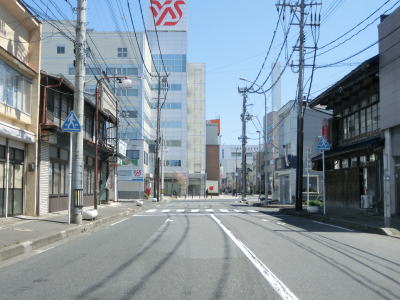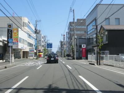 | 一方通行の3車線道路を走っていると青森r11十三日町交差点と青森r23・r251三日町交差点を相次いで通過する。本八戸駅や八戸市役所に近く、沿線には商業施設が密集している。そのためか、左端車線は7〜9時と16〜19時はバス専用車線、9〜16時と19〜23時はバス優先車線となる。専用でも優先でもない時間帯は23〜翌7時の間だけである。 | ||
