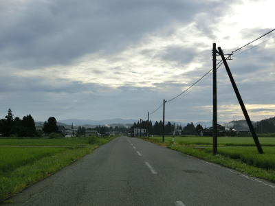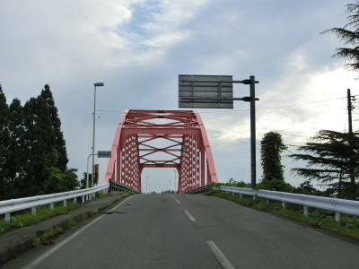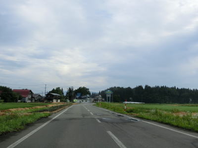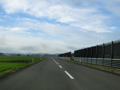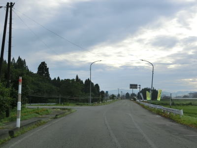 | 水田と集落が混在する中を快走していると新田橋を渡るが、この橋も架けかえられていない。淀川を橋で渡る箇所が多いのは淀川が蛇行しているためである。ごく緩やかな上り勾配の直線道路を走っているとE46秋田道をくぐる。 | ||