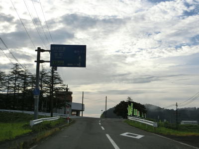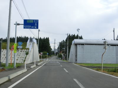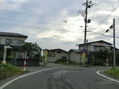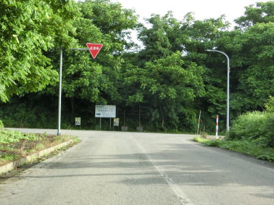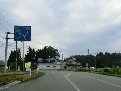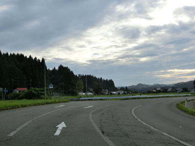 | 市道との交差点(右カーブを)を曲がった後に緩やかに下り、直線道路を走っていると今度は左の直角カーブを曲がる。こちらは明らかにカーブという形状のせいか案内標識は設置されていない。左カーブの直後に市境があるため大仙市に入る。秋田市の境標識は設置されているが、大仙市のそれは設置されていない。 | ||
