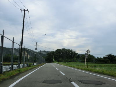 | 雄物川から離れて集落を繋ぐように山裾を快走する。歩道がなく車線幅は広い訳ではないが交通量が少ないせいもあって走りにくさは感じない。新波川に架かる橋が架け替えられていたが、これも河川改修に伴うものと思われる。 | ||