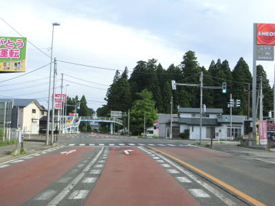 | JR奥羽本線をくぐってすぐにR13上淀川橋交差点に突き当たる。案内標識にR341のおにぎりが表記されていないが、左折してR13との重複区間を秋田方面に進む。角館が支柱に追加されているのは秋田と盛岡だけでは分かりにくいためだろうか。 上淀川橋交差点からは二桁国道と重複しているためか交通量が増える。緩やかな左カーブを曲がってR13・R46上淀川交差点に至る。この交差点の案内標識にもR341のおにぎりが表記されていないが、右折してR46との重複区間を盛岡・角館方面に進む。R13との重複区間は約500mと短い。 |