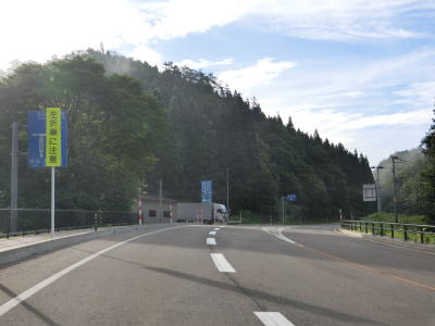 | 登坂車線が始まった後に仙北北部広域農道との交差点を通過する。大きく右にカーブした後に峠部分を越えると登坂車線が終わり通常の対面2車線道路に戻るが、走りやすい道路状況に変化はない。 | ||