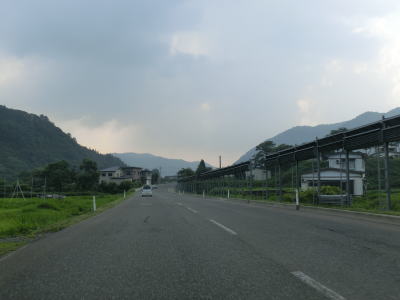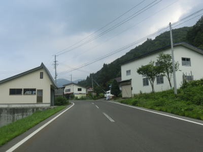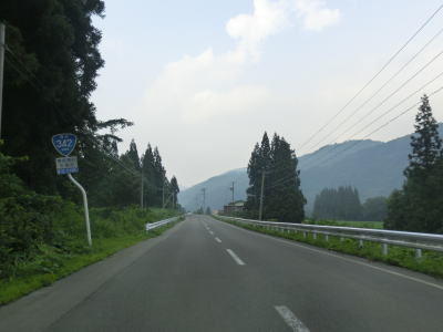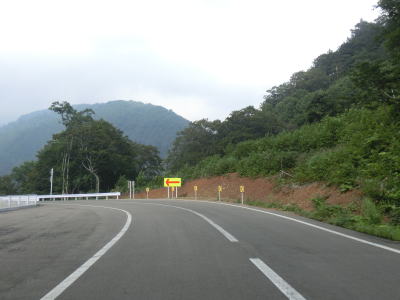 | 最初の集落から北は勾配はさらに緩やかになる。分断県道である秋田r323との交差点を通過してからも集落を繋ぎながら2車線快走路と淡々と走る。やや急なカーブもあるが傍を流れている成瀬川の蛇行に忠実に沿っていた場合に比べると随分マシな線形と言える。 | ||