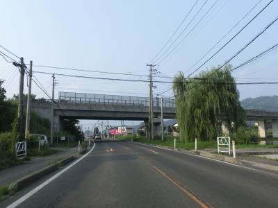| 旧十文字町の中心部を抜けてから2車線快走路を大きく左に曲がっていると緩やかな上り勾配となり仁井田跨線橋でJR奥羽本線を越える。線路より西側には大型商業施設が建っており交通量もかなり増えている。 | ||