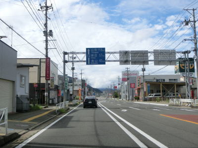 | 54.中田ランプの出口を通過 | 55.おにぎりが現役の国道である事を示している | 56.上中田集落 |